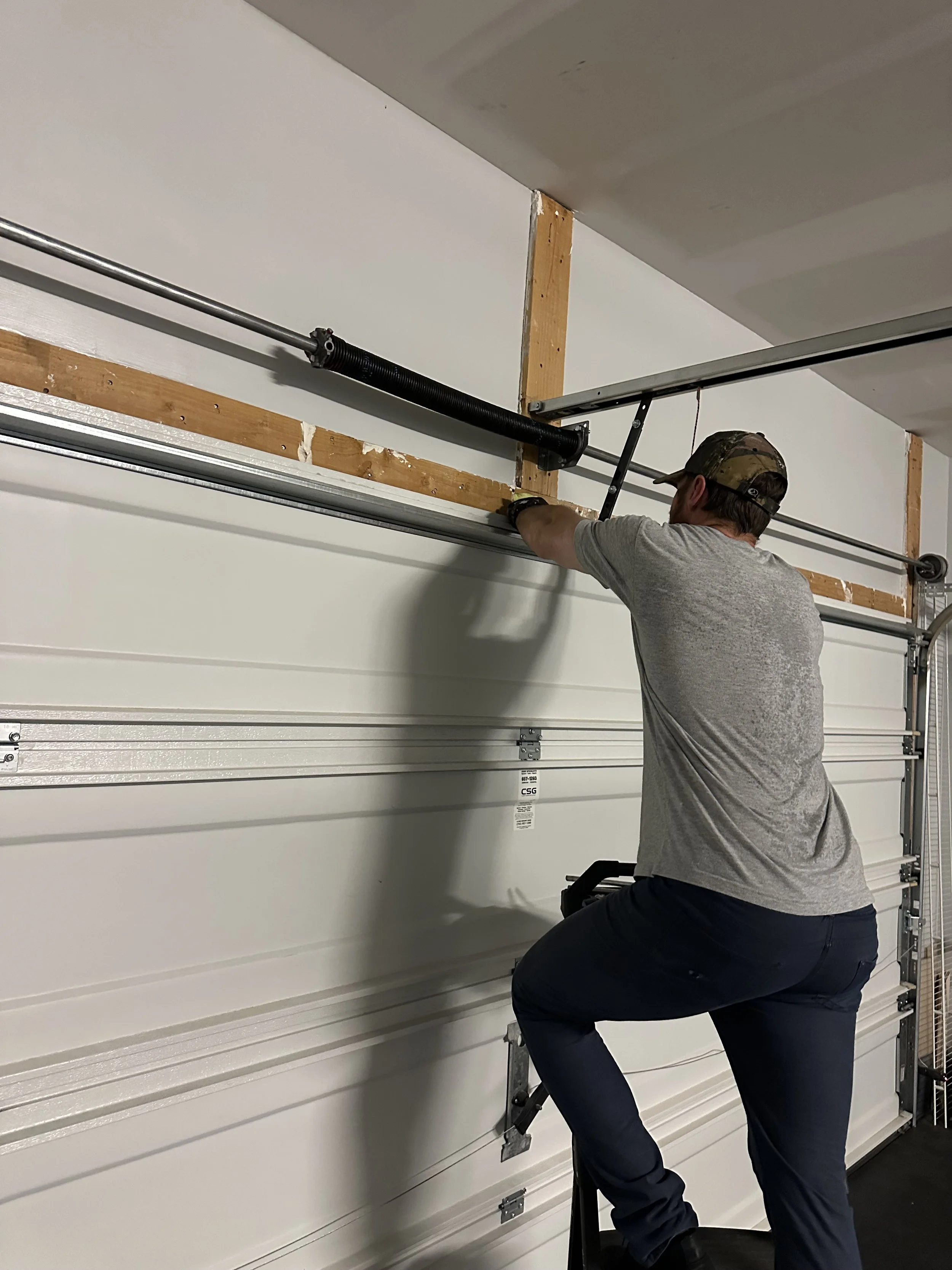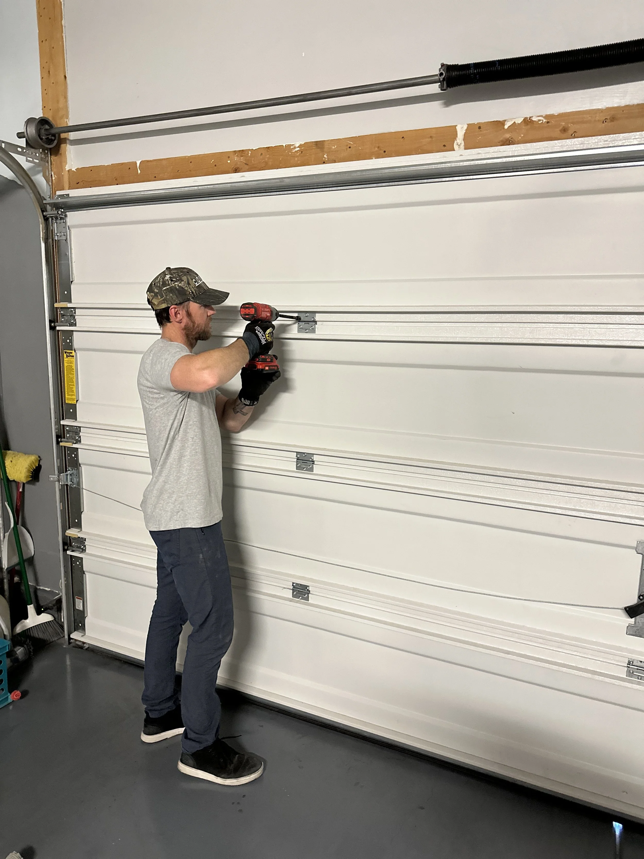 Broken spring, dented panel, cable wrapped around the tube, door falling off track, etc. We can diagnose any repairs needed, and give you an exact quote before we do any work.